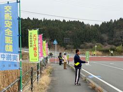 4月7日、春の交通安全運動に合わせて、楢葉町安全見守り協議会による立哨活動を行いました。桜の花びらが舞い散る中、町内1...