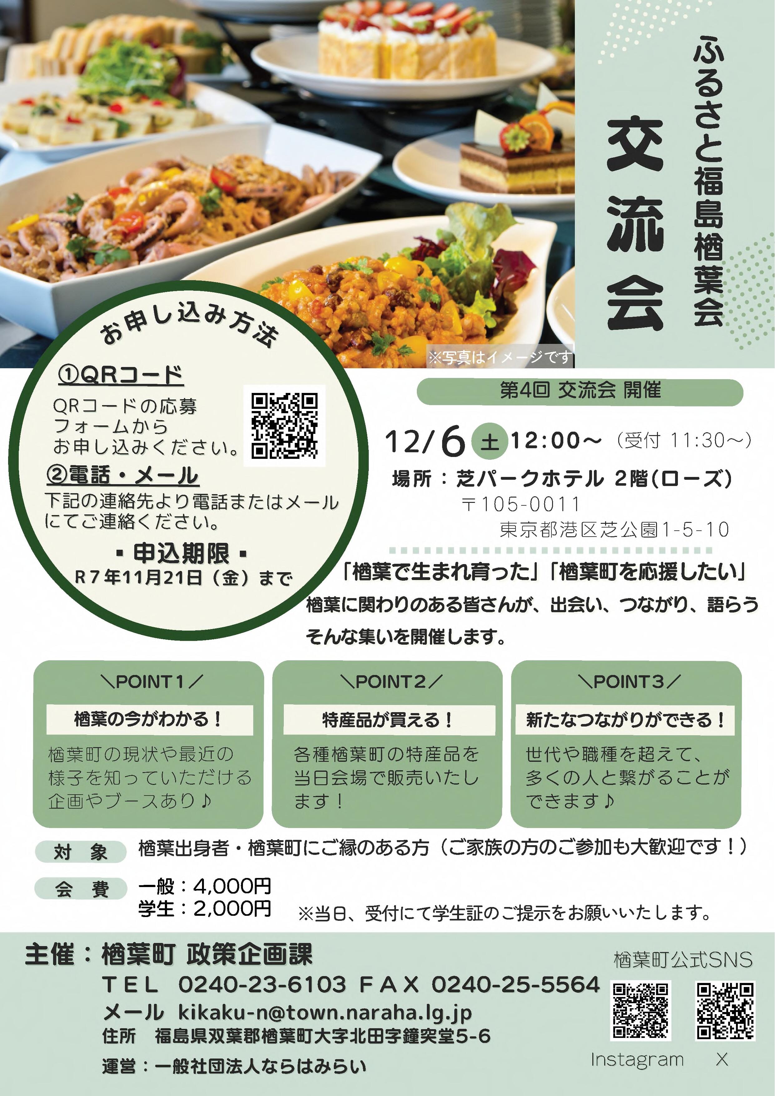 この度、ふるさと福島楢葉会交流会を下記のとおり開催することになりました。