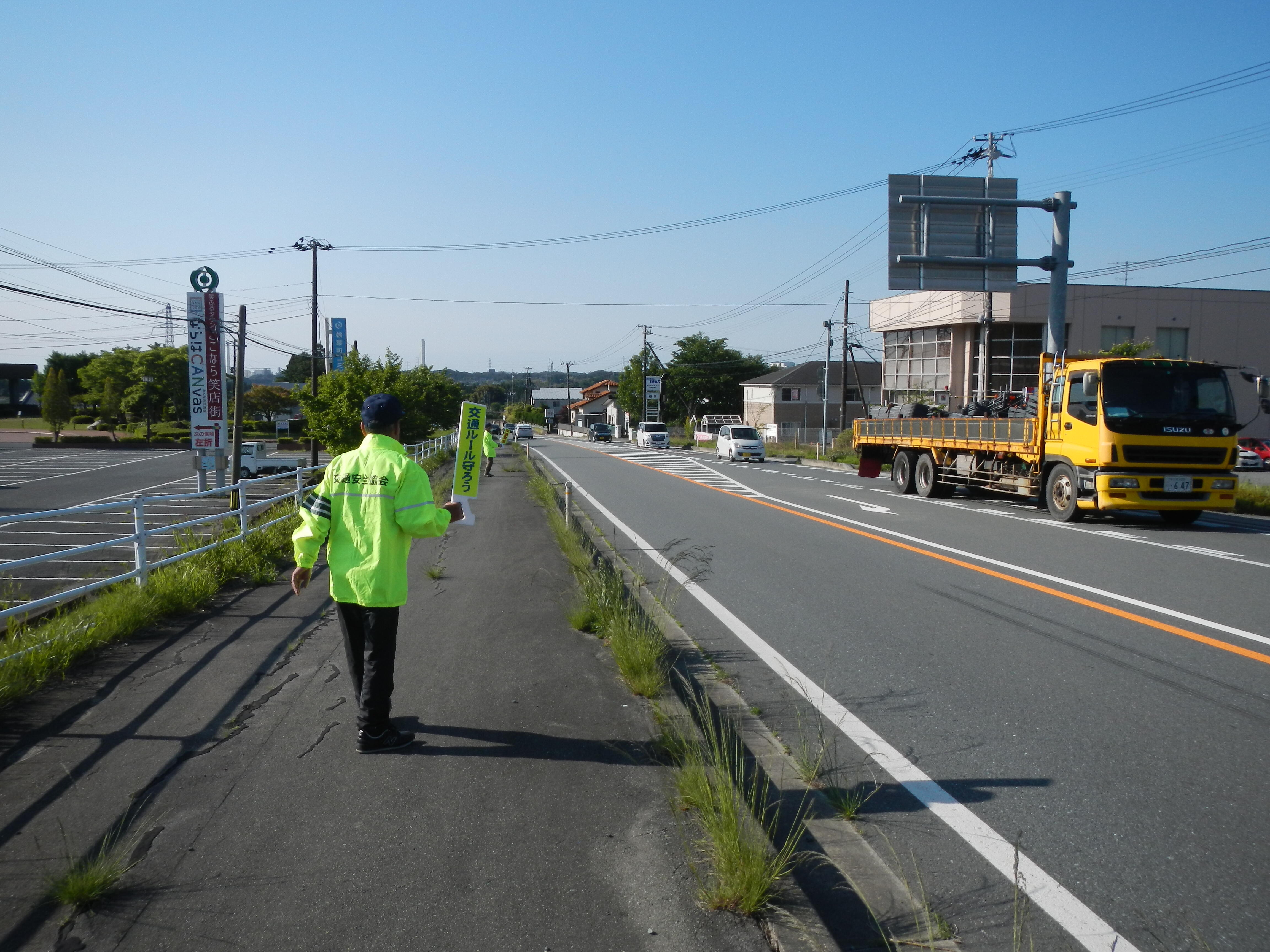 春の全国交通安全運動に合わせて、5月11日(木)に「楢葉町見守り協議会」の皆様と一緒に交通安全立哨活動を実施しました。
